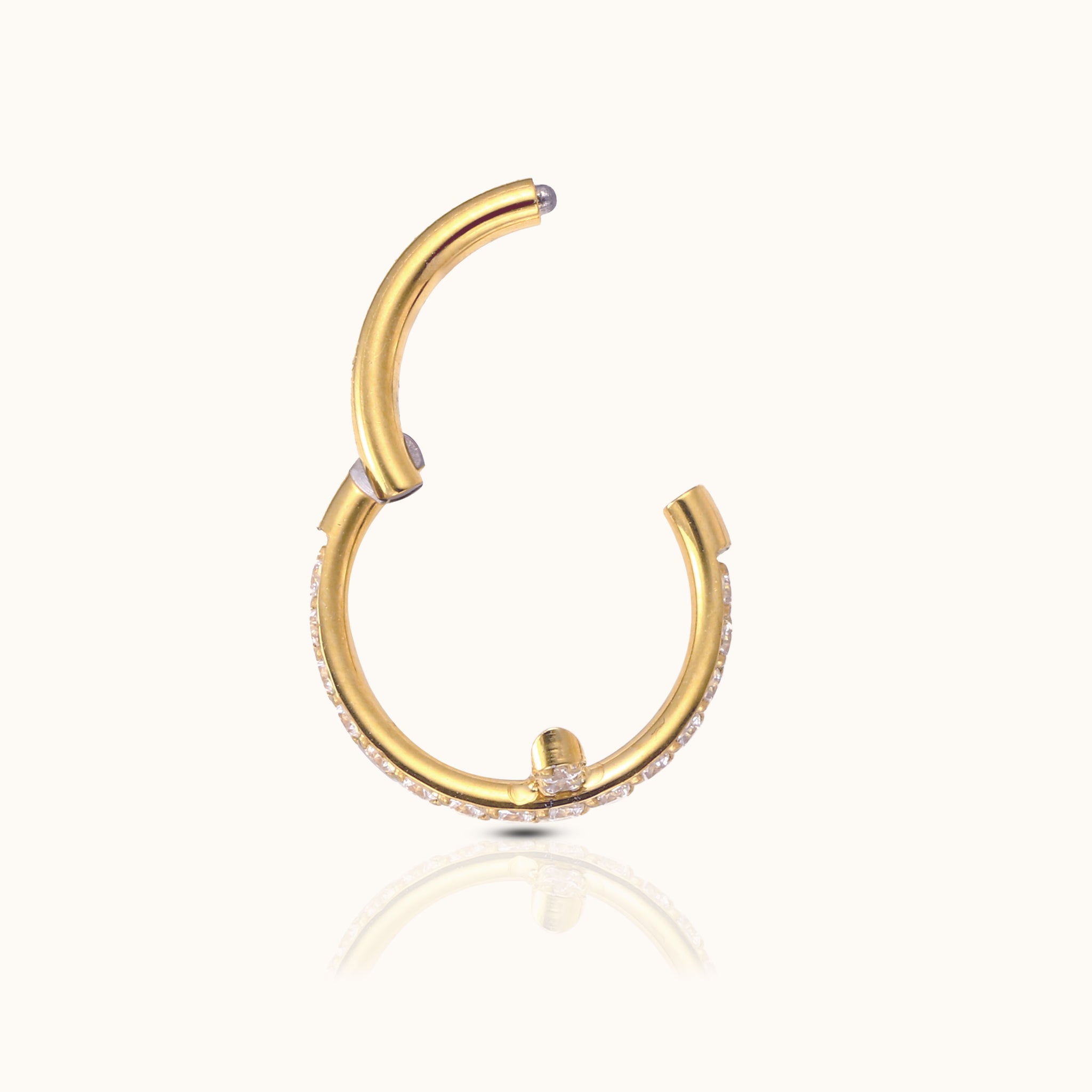 CZ Cross Clicker Hinged Hoop Earring is made of Implant Grade Titanium (the ultimate material for fresh and healed piercings) coated in 18K Gold PVD Plating with impeccable durability in any environment or daily use, sold individually for mix and match...