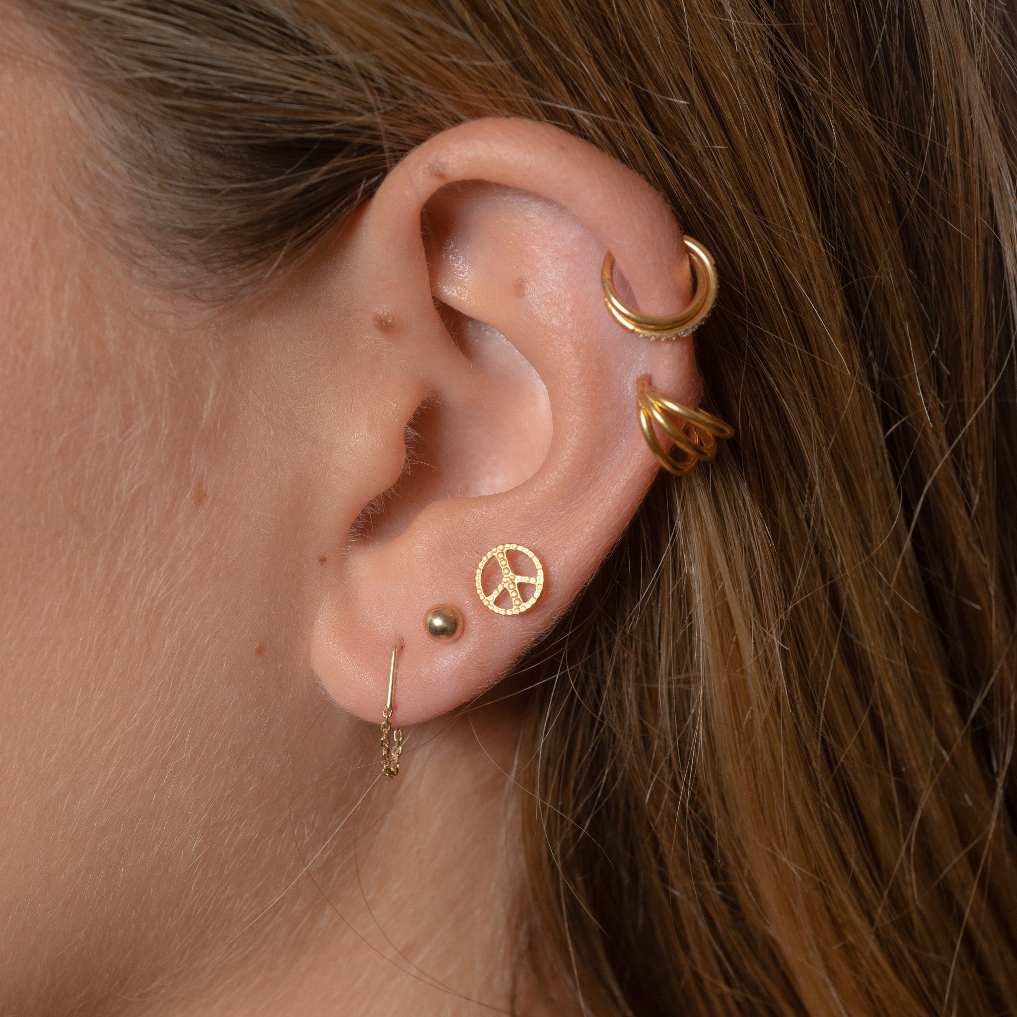 Peace Sign Threadless Titanium Flat Back Earring is made of Implant Grade Titanium (the ultimate material for fresh and healed piercings) coated in 18K Gold PVD Plating with impeccable durability in any environment or daily use, sold individually for mix and...